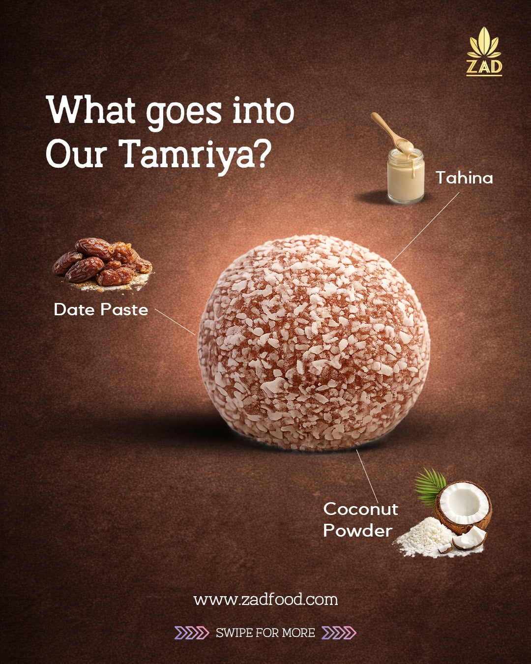 المكونات: معجون التمر، مسحوق جوز الهند، الطحينة، الجلسرين