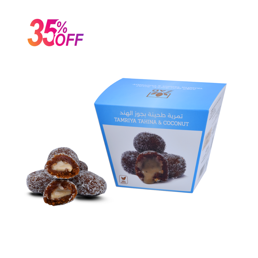 دلل نفسك بتجربة تمرية الطحينة وجوز الهند، مزيج رائع من معجون التمر ومسحوق جوز الهند والطحينة. هذه الحلوى الطبيعية بالكامل والخالية من منتجات الألبان، خالية من السكر المضاف، والألوان، والنكهات الاصطناعية، والمواد الحافظة. صُنعت بفخر في الإمارات العربية المتحدة، لتقدم لك تجربة طعام صحية.