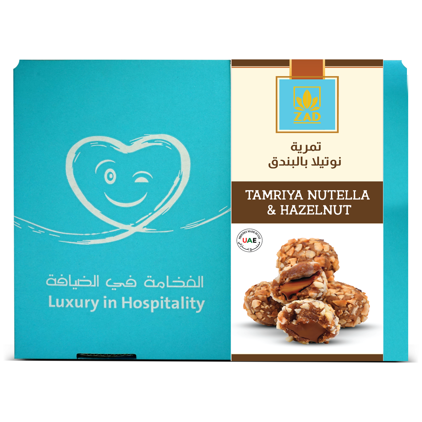 Indulge in the irresistible fusion of dates, rich hazelnuts, and creamy chocolate spread with our Tamriya Nutella & Hazelnut. This decadent treat combines the natural sweetness of date paste with the crunch of hazelnuts and the smoothness of hazelnut chocolate spread. Proudly made in the UAE, it’s a delightful snack that blends tradition with indulgence.