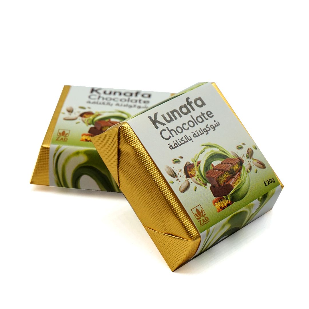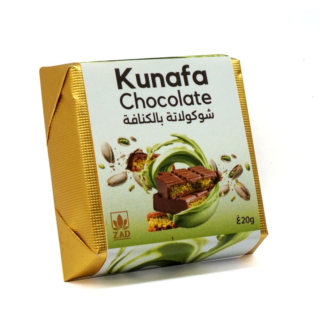 Discover a unique fusion of textures and flavors with ZAD Kunafa Chocolate. Each 20g piece blends crispy, golden kunafa strands with smooth, rich chocolate to create a truly irresistible bite. Perfect for sharing, gifting, or treating yourself to an elegant twist on a traditional favorite.